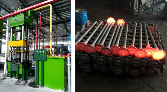 预墩机、摆辗锻造机是我公司针对汽车半轴相关产品独特开发的特种成形设备,是国内先进的节能、节材、少无切削及机电一体化的高科技压力成形设备。该设备具有投资小、耗能低、易维修、操作简单等优点,辗压力仅为常规锻造的1/15-1/10,较普通锻锤类设备具有效率高(提高3倍以上)、加工零件精度高、节约原材料、噪音低、振动小等优点。自摆辗锻造机在我国正式生产和推广以来,现已为汽车半轴等生产企业和必备锻造制坯设备,并为我国汽车半轴的锻造加工做出了巨大的贡献。